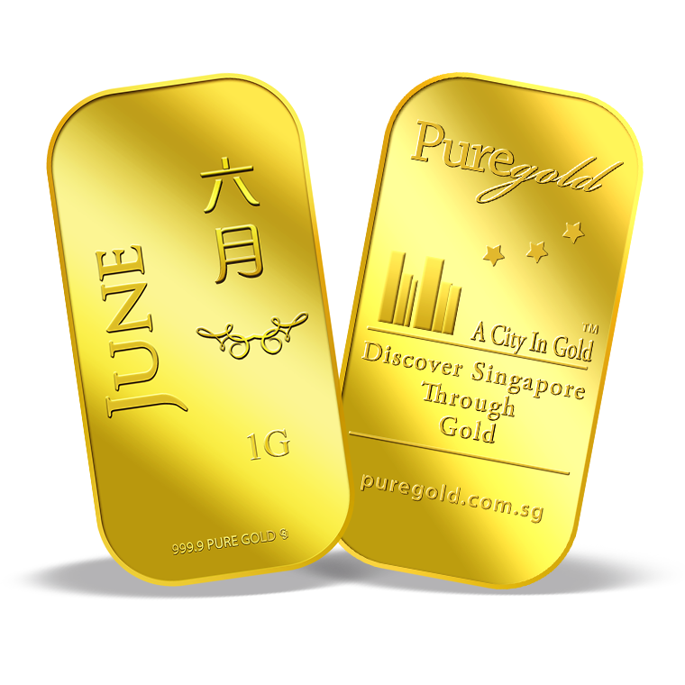 The image is embossed on a 1 gram 999.9 fine gold bar.