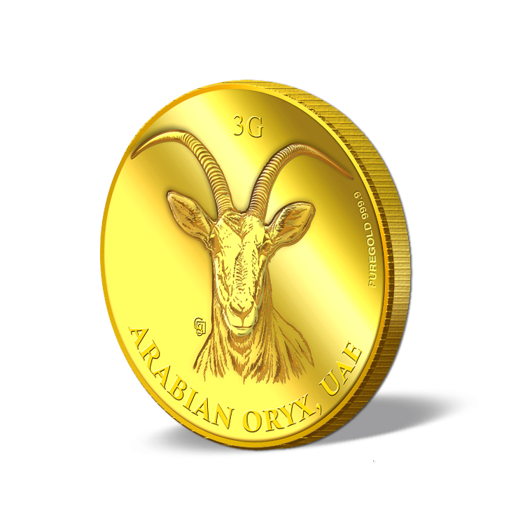 The image is embossed on a 3 grams 999.9 fine gold medallion.