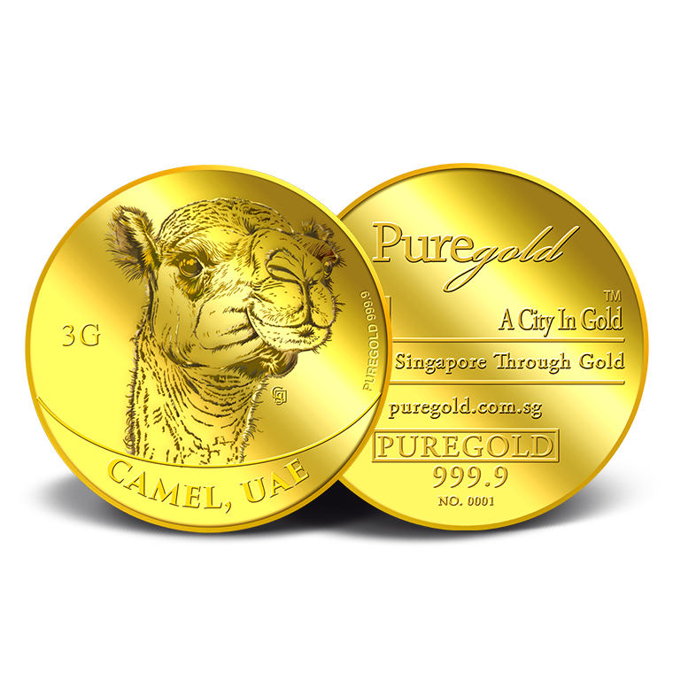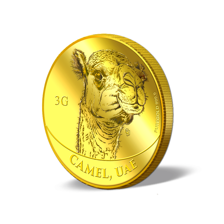 The image is embossed on a 3 grams 999.9 fine gold medallion.