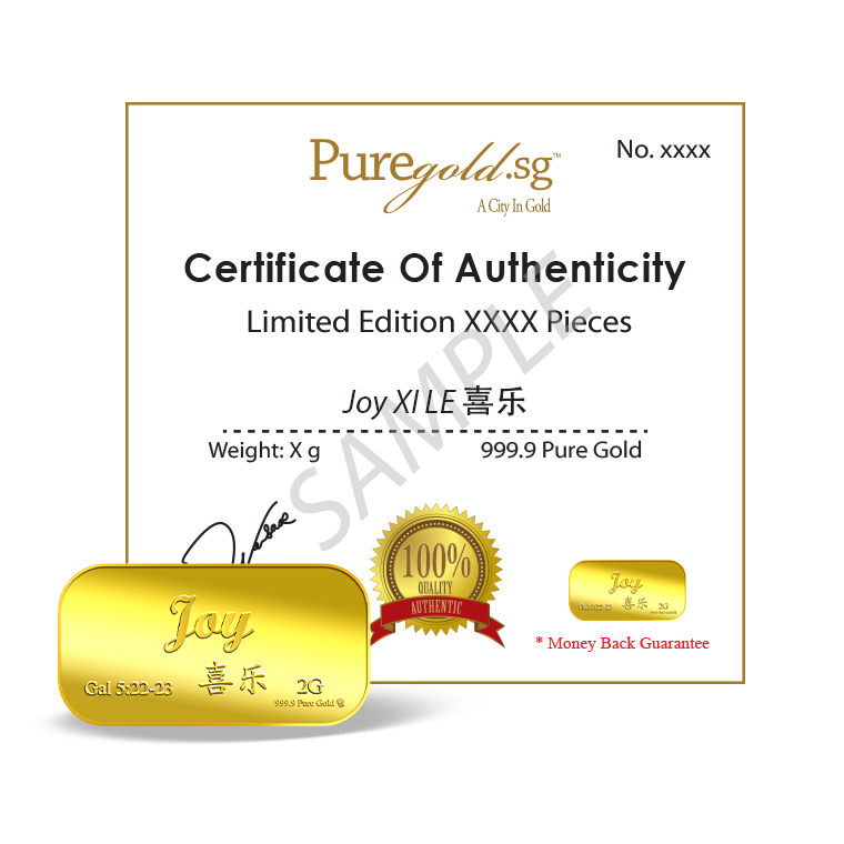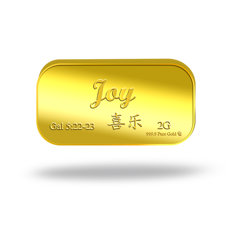 The image is embossed on a 2 grams 999.9 fine gold bar.