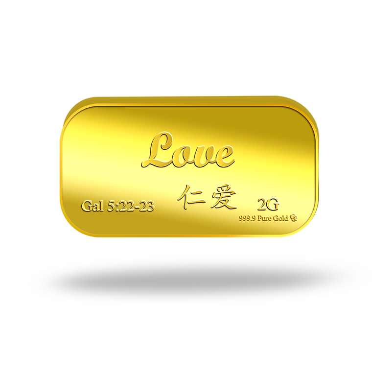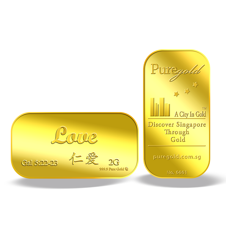 The image is embossed on a 2 grams 999.9 fine gold bar.