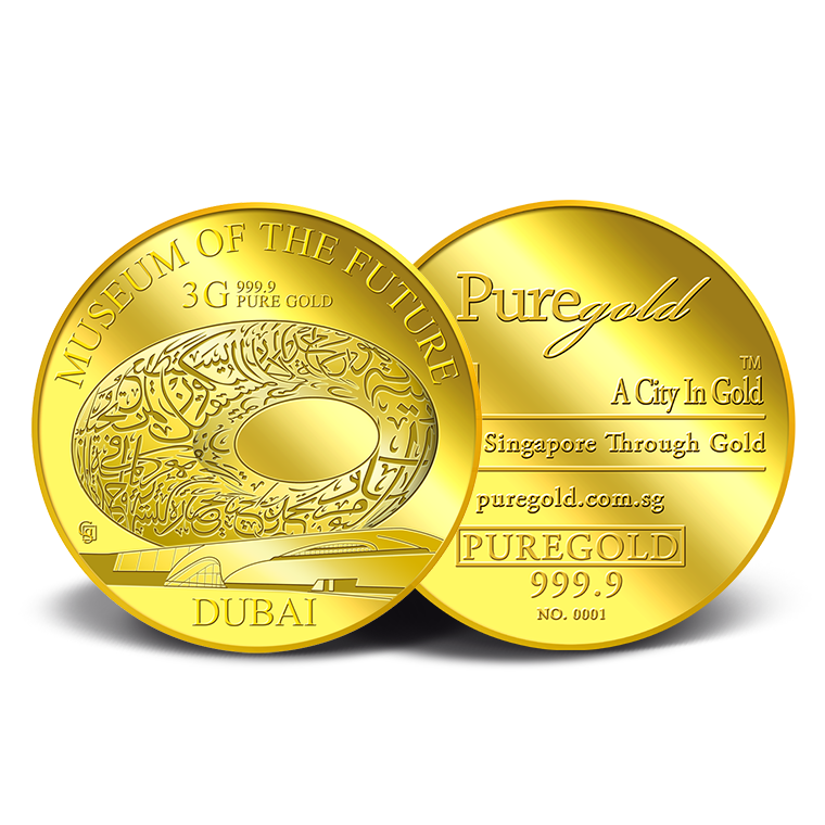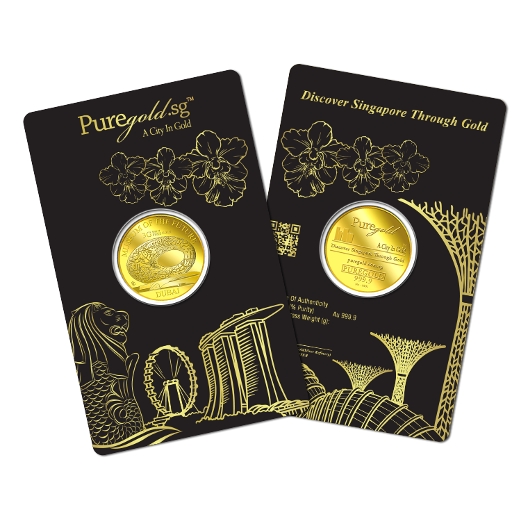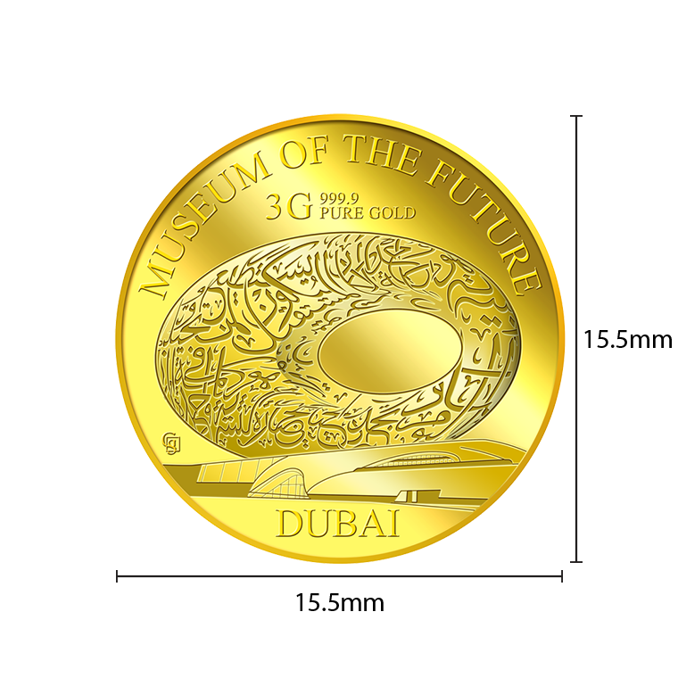 The image is embossed on a 3 grams 999.9 fine gold medallion.