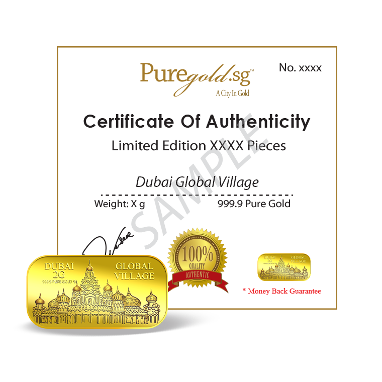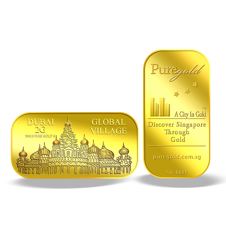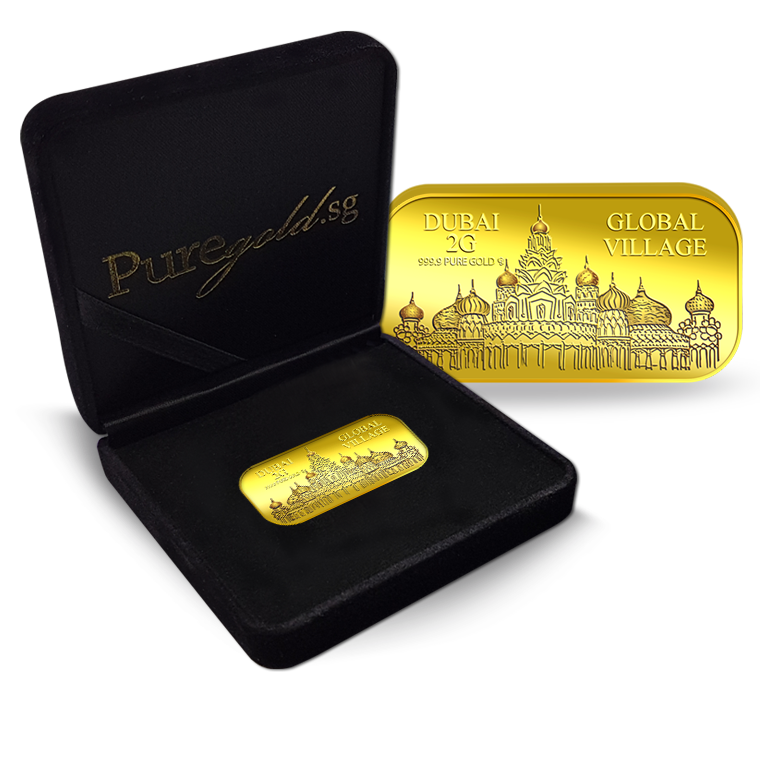 The image is embossed on a 2 grams 999.9 fine gold bar.