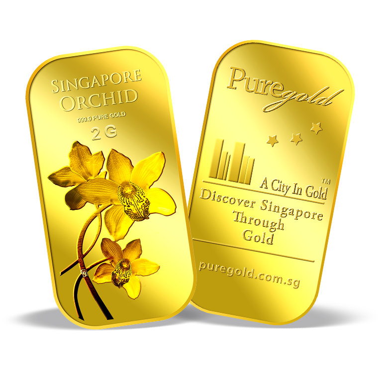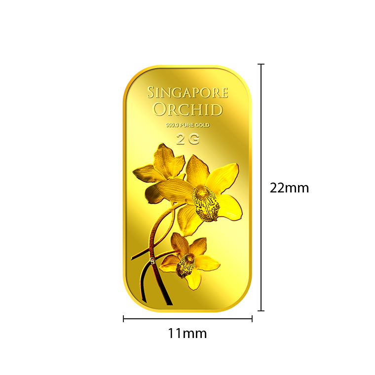 The image is embossed on a 2 grams 999.9 fine gold bar.