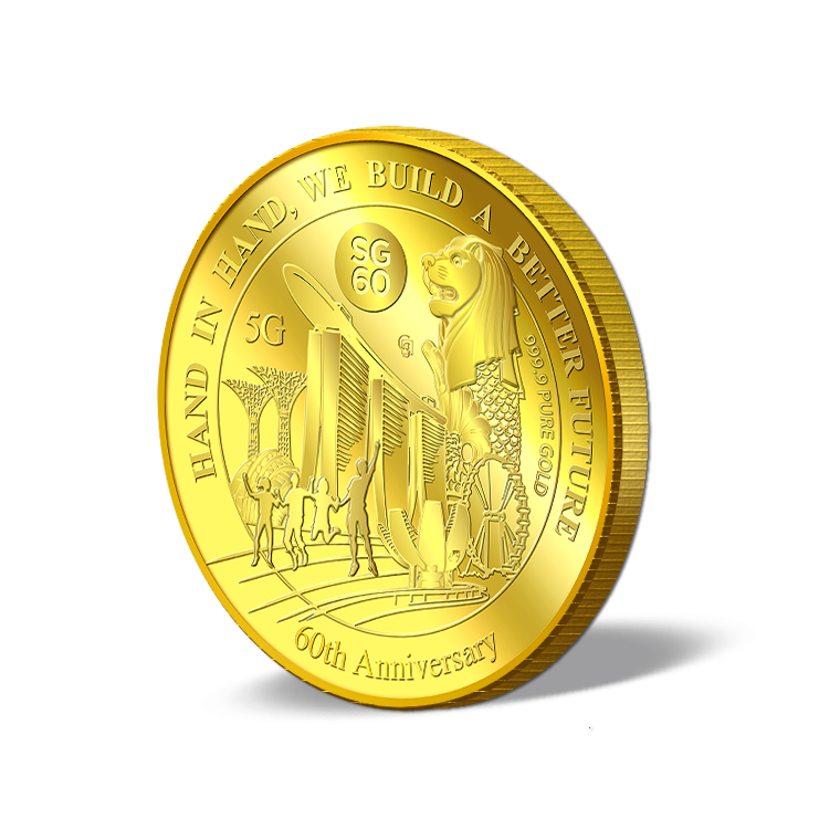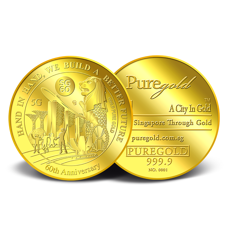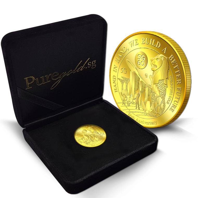 The image is embossed on a 5 grams 999.9 fine gold medallion.