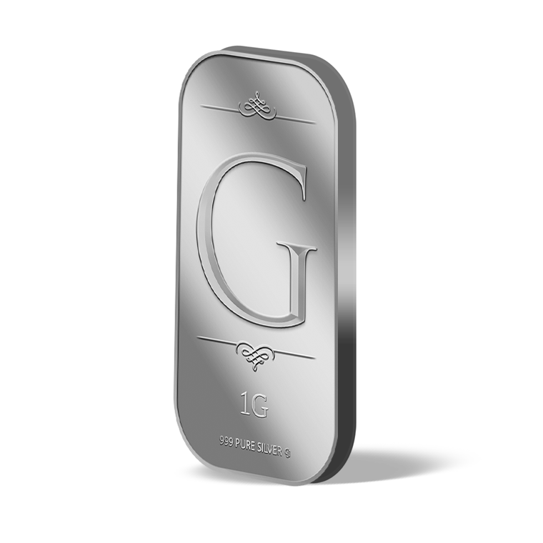 The image is embossed on a 1 gram 999 fine silver bar.