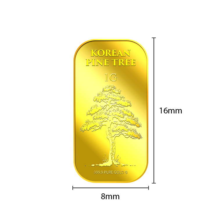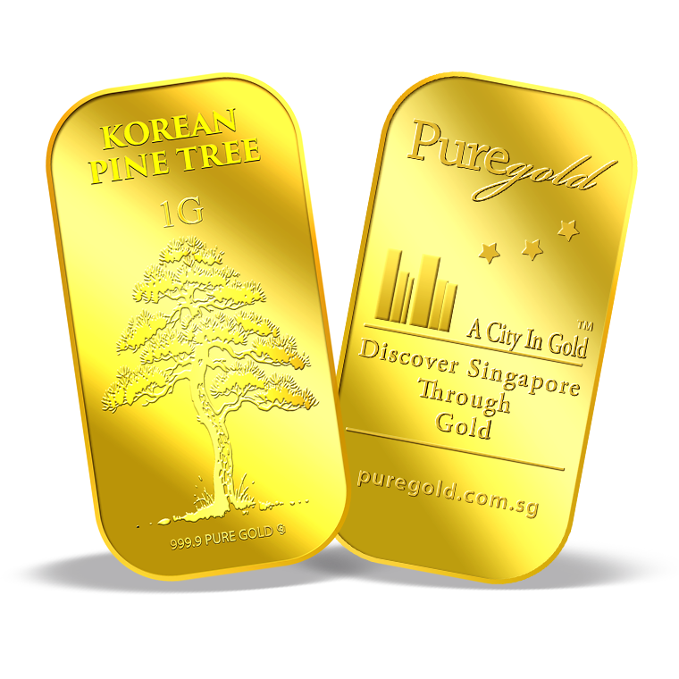 The image is embossed on a 1 gram 999.9 fine gold bar.