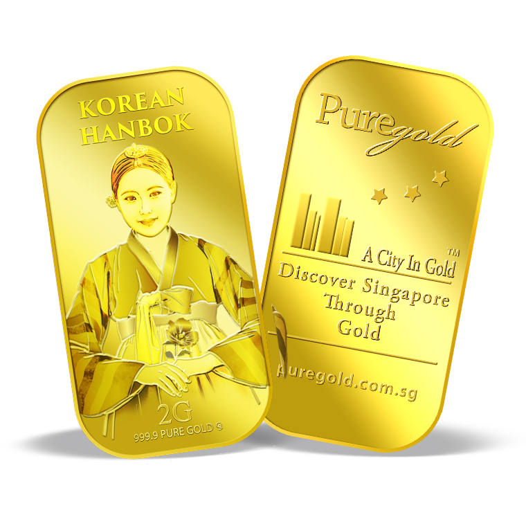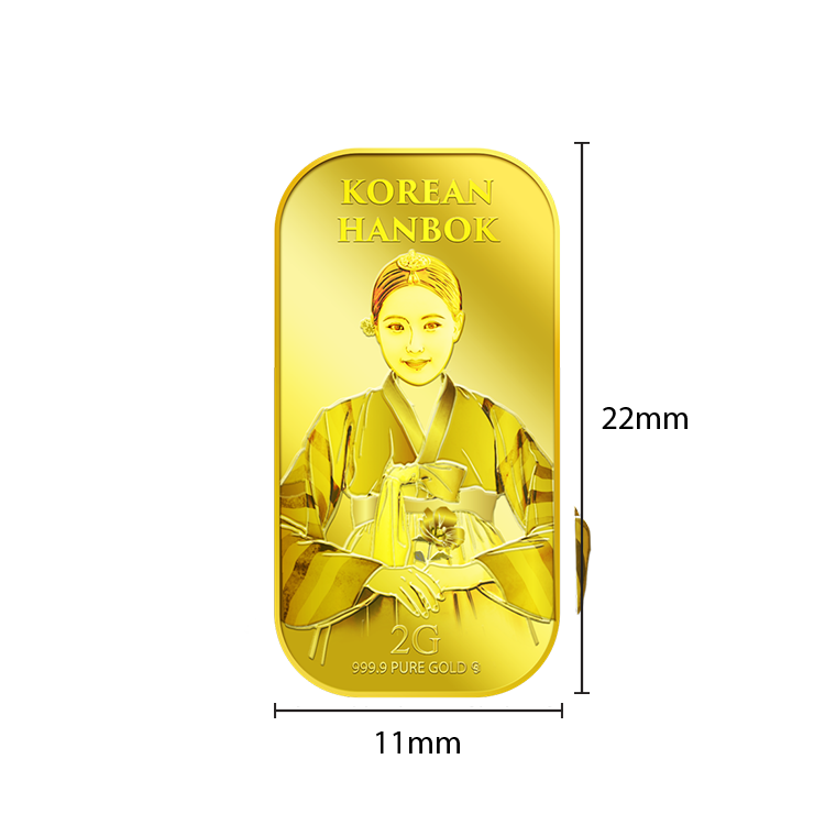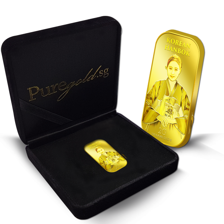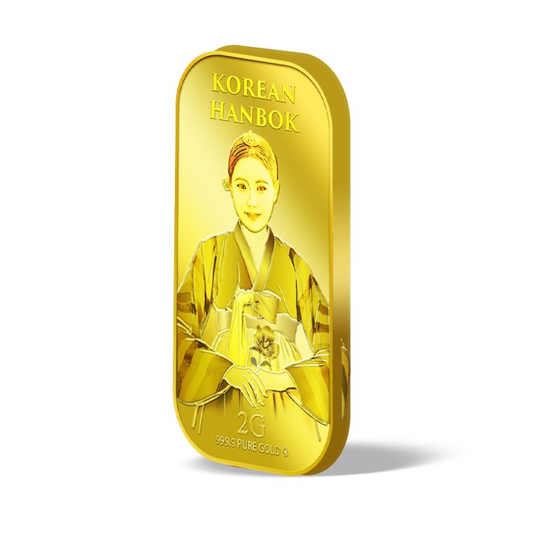 The image is embossed on a 2 grams 999.9 fine gold bar.