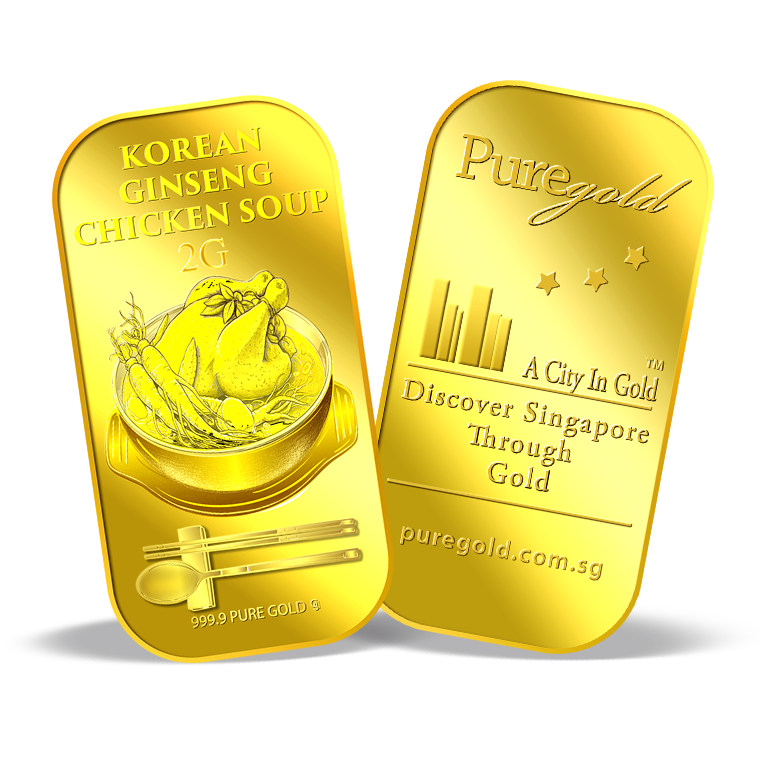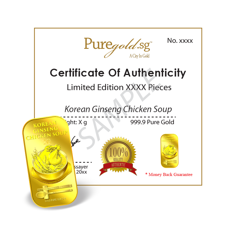 The image is embossed on a 2 grams 999.9 fine gold bar.