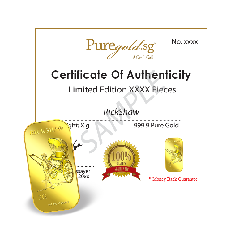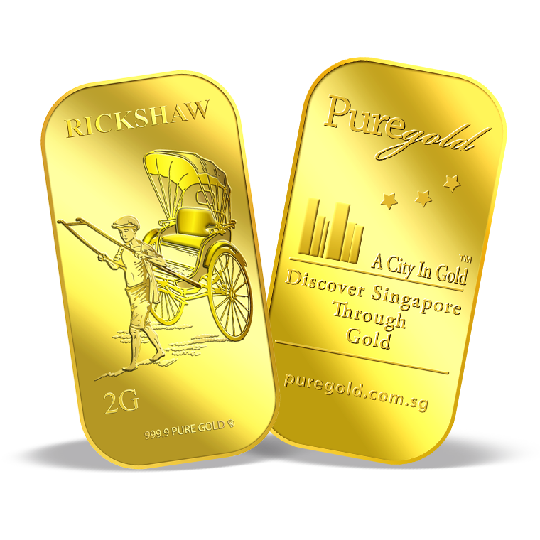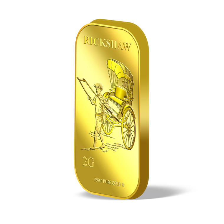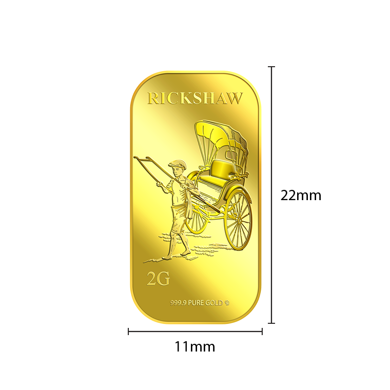 The image is embossed on a 2 grams 999.9 fine gold bar.