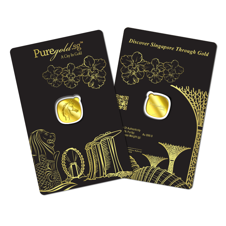 The image is embossed on a 1 gram 999.9 fine gold bar.